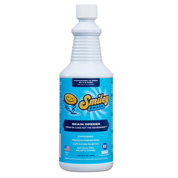 Smiley Drain's new Drain Opener & Maintainer combines cutting-edge technology with a commitment to safety and sustainability. Formulated with a high-density, thickened solution, it effectively clears stubborn clogs and prevents future buildup caused by grease, hair, and other debris in kitchen sinks, bathroom drains, sewer mains, and more. Designed to deliver the performance of traditional caustic cleaners without harsh chemicals, Smiley Drain’s Drain Opener & Maintainer is a powerful, reliable choice for both clog removal and ongoing drain maintenance.